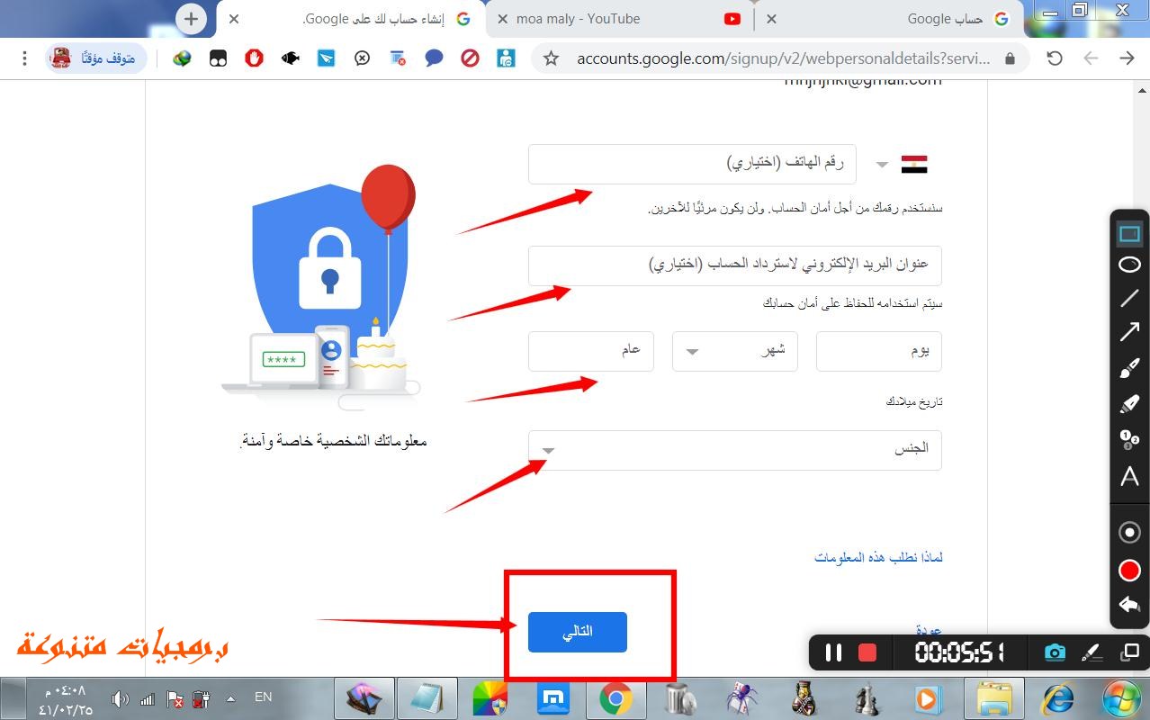 انشاء ايميل Gmail وعمل قناة يوتيوب عمل ايميل جيميل بدون رقم هاتف
